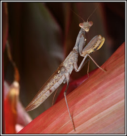 This morning I returned from my usual stroll across the street to retrieve a newspaper. The outline of a smooshed bug caught my eye. There on the gray asphalt was the familiar body of a praying mantis.